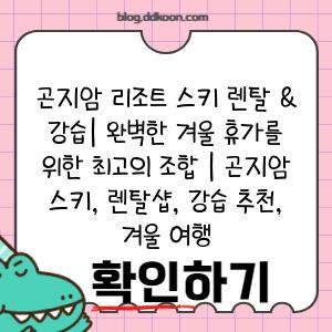 곤지암 리조트 스키 렌탈 & 강습을 완벽하게 준비하고 겨울 휴가를 알차게 보내는 팁부터 추천 렌탈샵과 강습 프로그램까지 자세히 소개해 드립니다. 곤지암 스키 여행을 계획 중이라면, 지금 바로 아래 내용을 확인해 보세요!