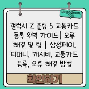 갤럭시 Z 플립 5 교통카드 등록 완벽 가이드 | 오류 해결 및 팁 | 삼성페이, 티머니, 캐시비, 교통카드 등록, 오류 해결 방법