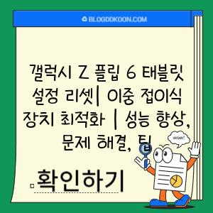갤럭시 Z 플립 6 태블릿 설정 리셋| 이중 접이식 장치 최적화 | 성능 향상, 문제 해결, 팁
