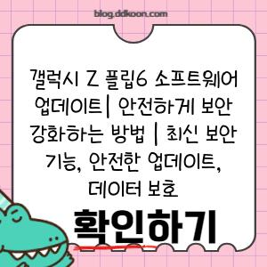 따라서, 안전하고 안정적인 사용 환경을 위해 갤럭시 Z 플립6의 소프트웨어 업데이트를 정기적으로 확인하여 최신 버전으로 업데이트하는 것이 중요합니다.