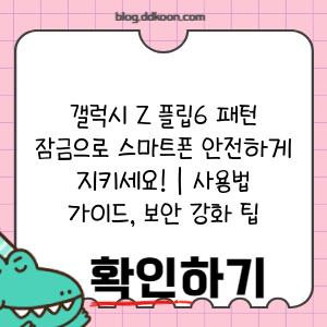본 글에서는 갤럭시 Z 플립6 패턴 잠금 설정 방법, 사용법, 보안 강화 팁에 대해 자세히 설명하여, 갤럭시 Z 플립6을 안전하고 편리하게 사용하는 데 도움을 드리겠습니다.
