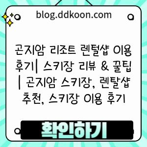 - 렌탈샵 비교: 곤지암 스키장 내에는 다양한 렌탈샵이 있습니다. 렌탈샵마다 장비 종류, 가격, 서비스가 다르므로, 미리 비교해 보고 자신에게 맞는 렌탈샵을 선택하는 것이 좋습니다.