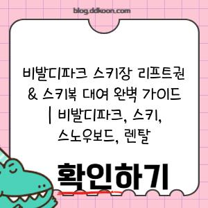 추운 겨울, 설렘 가득한 스키 여행 계획하고 계신가요? 눈 덮인 슬로프를 질주하는 스릴 만큼이나 중요한 건 바로 경제적인 스키 여행입니다. 비발디파크 스키장은 다양한 리프트권 할인 혜택을 제공하며, 스키복 대여까지 알뜰하게 준비할 수 있는 곳입니다. 지금부터 비발디파크 스키장 리프트권 할인 꿀팁과 스키복 대여 정보를 자세히 알아보고, 눈 덮인 설경 속에서 마음껏 즐거움을 만끽해 보세요!