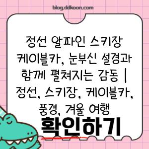 정선 알파인 스키장 케이블카는 겨울 여행지로서 최고의 선택이 될 것입니다. 아름다운 풍경과 짜릿한 액티비티를 동시에 즐길 수 있는 기회를 놓치지 마세요!