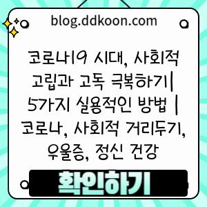 하지만 절망하지 마세요! 이 글에서는 코로나19 시대에도 사회적 고립과 고독을 극복하고 정신 건강을 지키는 데 도움이 되는 5가지 실용적인 방법을 소개합니다.