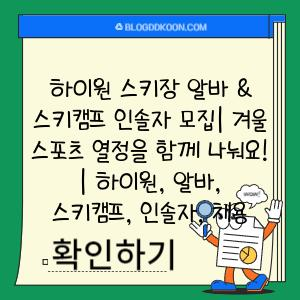 하이원 스키장에서 펼쳐지는 겨울 축제에 함께 참여하세요! 알바 & 스키캠프 인솔자 모집에 관심 있는 분들은 지금 바로 지원하세요!