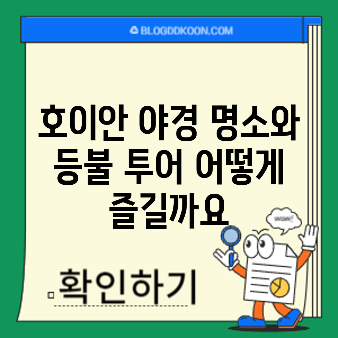 지금 호이안으로 떠나세요 호이안은 베트남의 아름다운 야경과 전통 등불로 유명한 도시랍니다! 이곳에서 야경 명소를 즐기고, 특별한 등불 투어를 경험하는 방법을 소개할게요. 호이안에서의 야경과 등불 투어는 절대 놓치지 말아야 할 필수 경험! 다양한 매력을 가진 호이안, 지금 바로 떠나보세요! 주요 특징 호이안은 보존된 고대 도시로, 매년 많은 관광객들이 찾는 명소에요. 야경 명소에서는 고요한 강과 반짝이는 등불이 … Read more