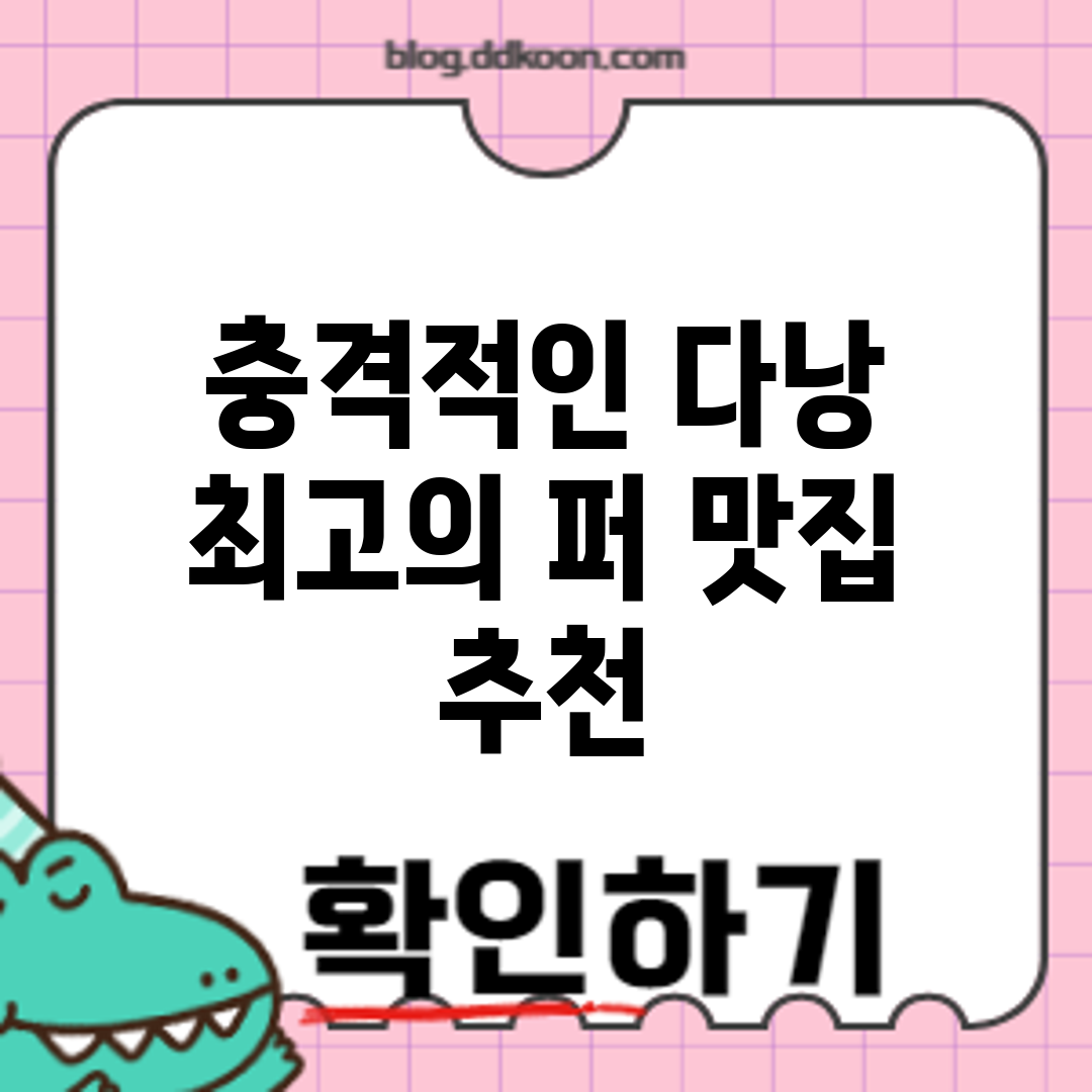 7곳의 인기 퍼 맛집 다낭에서 베트남 쌀국수(퍼)를 맛있게 즐길 수 있는 최고의 맛집 7곳을 소개합니다. 각각의 맛집은 독특한 레시피와 신선한 재료로 많은 사랑을 받고 있습니다. 자, 그럼 다낭 최고의 퍼 맛집으로 떠나볼까요? 주요 특징 각 맛집에는 그들만의 특별한 맛과 분위기가 있어, 여행 중 꼭 한번 방문해봐야 합니다. 여기에 포함된 맛집들은 여행객들뿐만 아니라 현지인들에게도 인기가 많습니다. … Read more