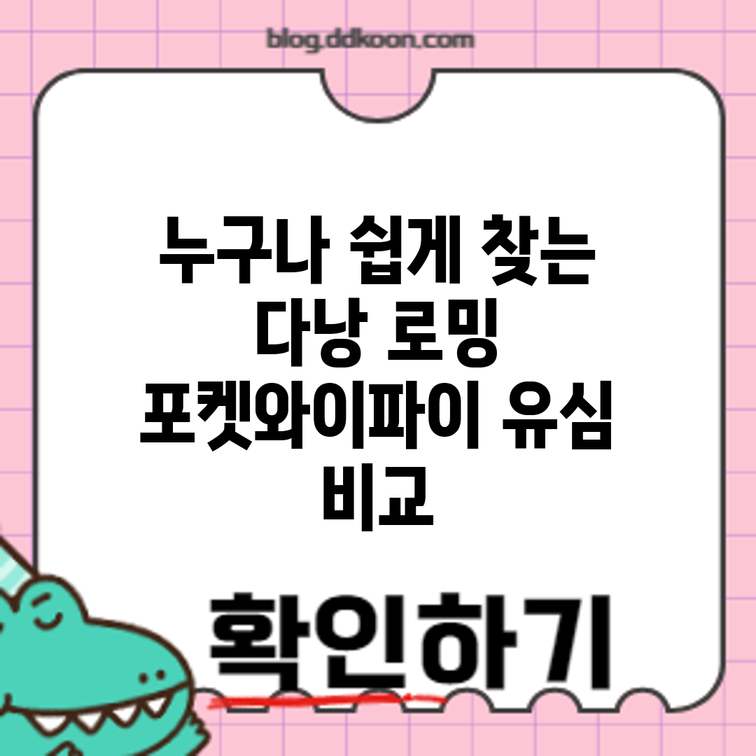 3가지 유심 요금 비교 다낭에서 유심을 이용하여 저렴하게 데이터 서비스를 이용할 수 있는 방법을 비교해보겠습니다. 다양한 옵션 중에서 여러분에게 가장 적합한 유심 요금제를 선택하세요! 주요 특징 다낭의 로밍 환경에서는 유심, 포켓와이파이 등 다양한 통신 옵션이 있습니다. 그 중 유심은 현지에서 실시간으로 저렴한 요금으로 데이터를 이용할 수 있는 장점이 있습니다. 주의할 점은 각 요금제의 데이터 제공량과 … Read more